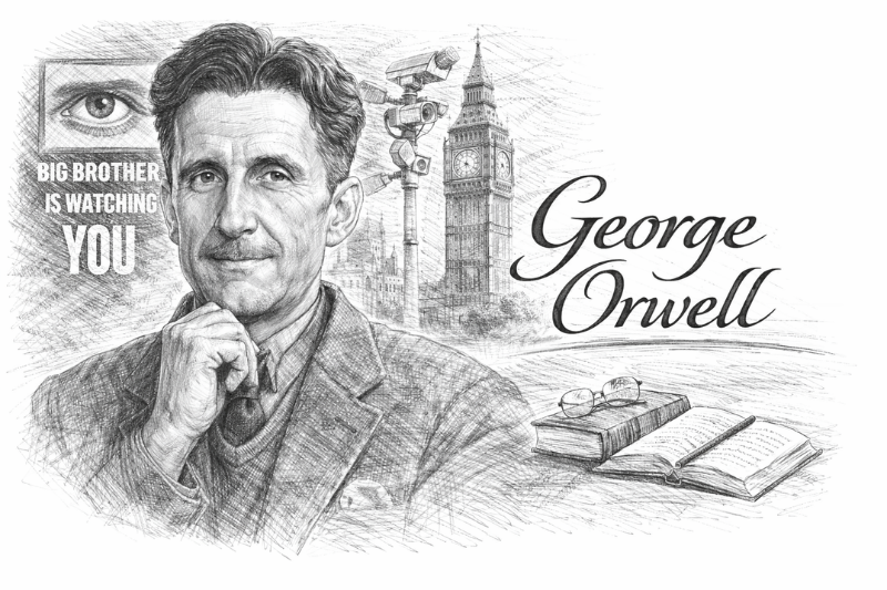 George Orwell was born as Eric Arthur Blair on June 25, 1903, in Motihari, India, during British rule. Later, he moved to England, where he developed his literary career. From early on, he showed a strong interest in politics, language, and social justice.